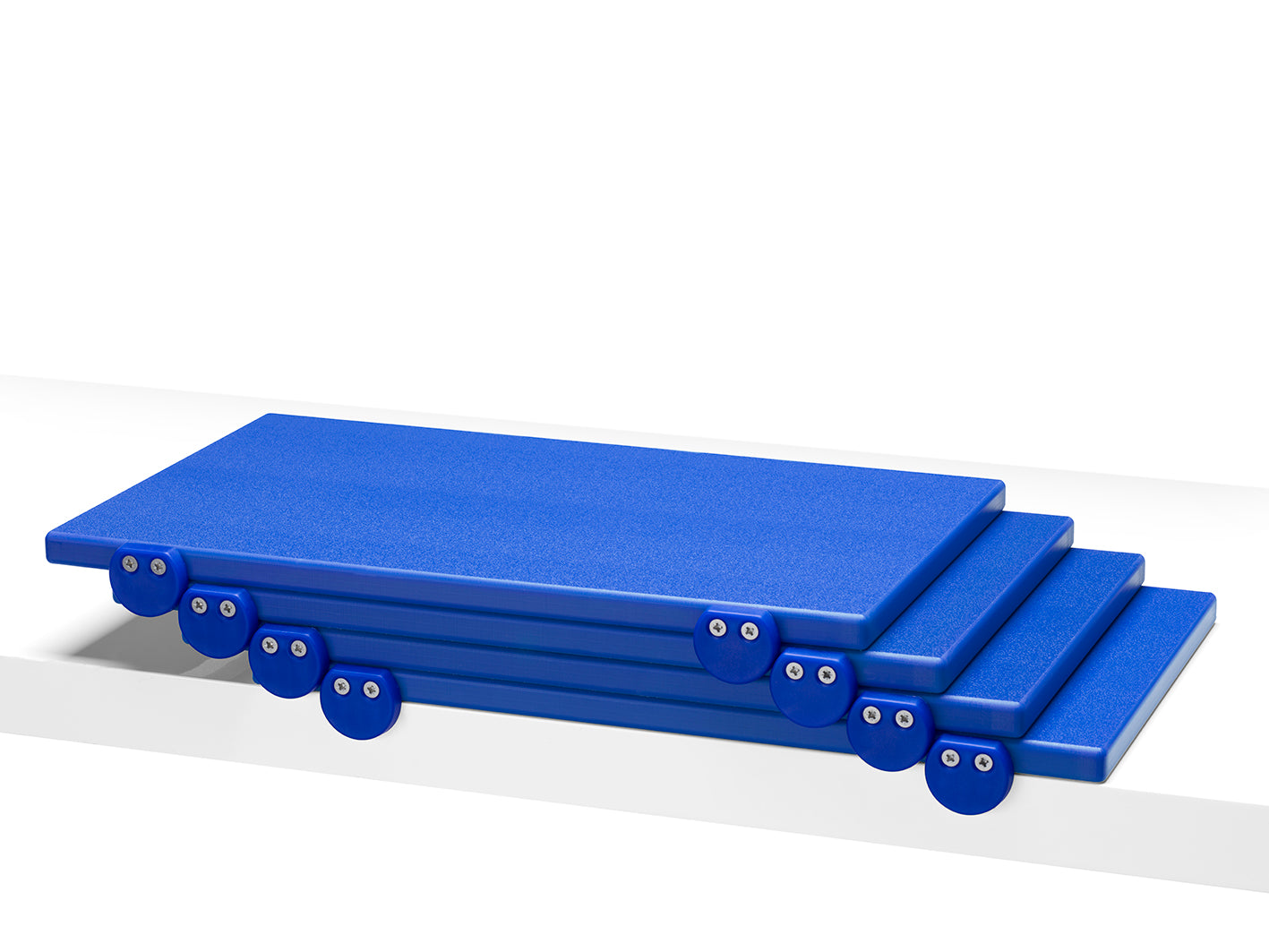Confezione di 4 taglieri in polietilene alimentare, dotati di fermi antiscivolo per una maggiore stabilità durante l’utilizzo.