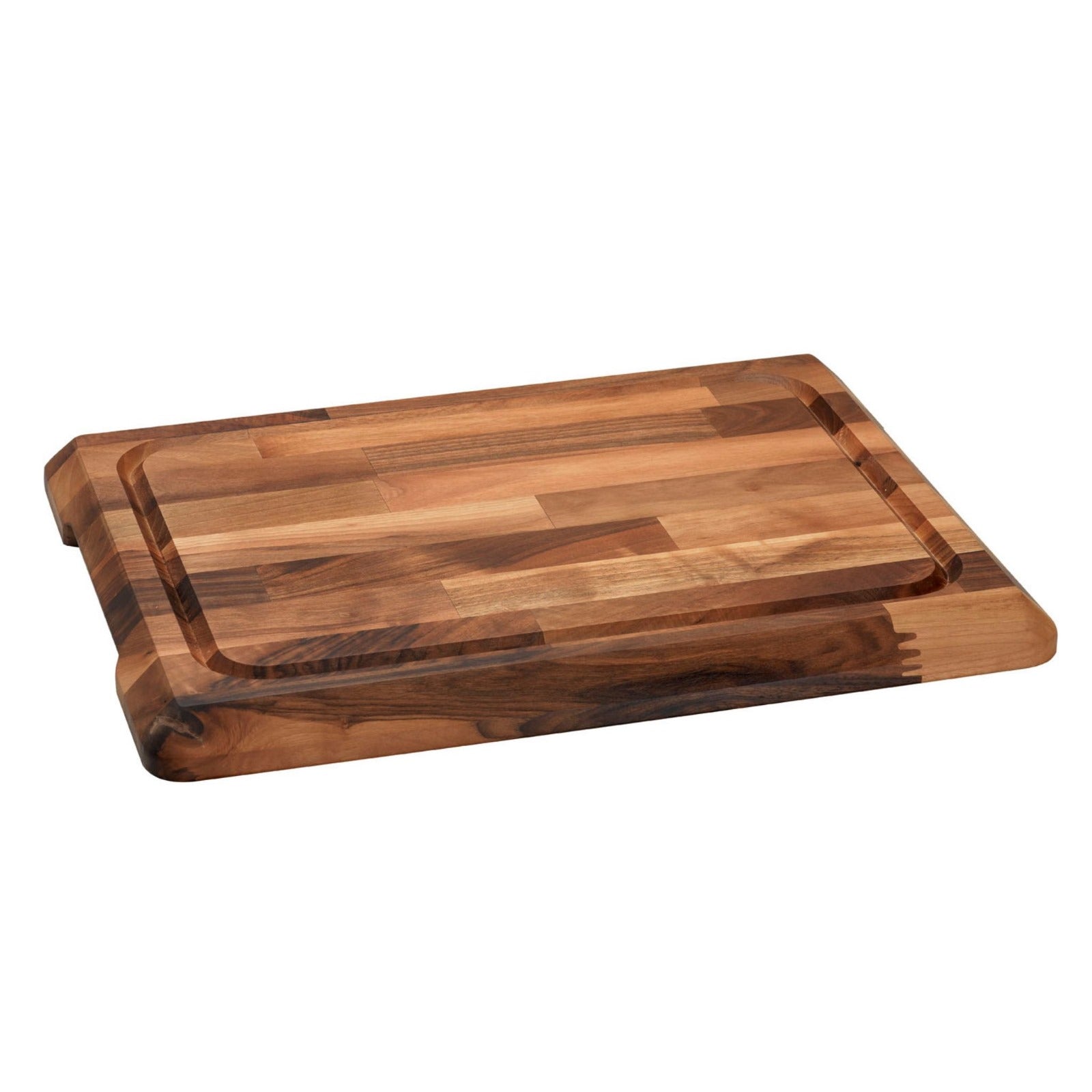 Tagliere in legno di noce con bordo inclinato e canalina raccogli succhi